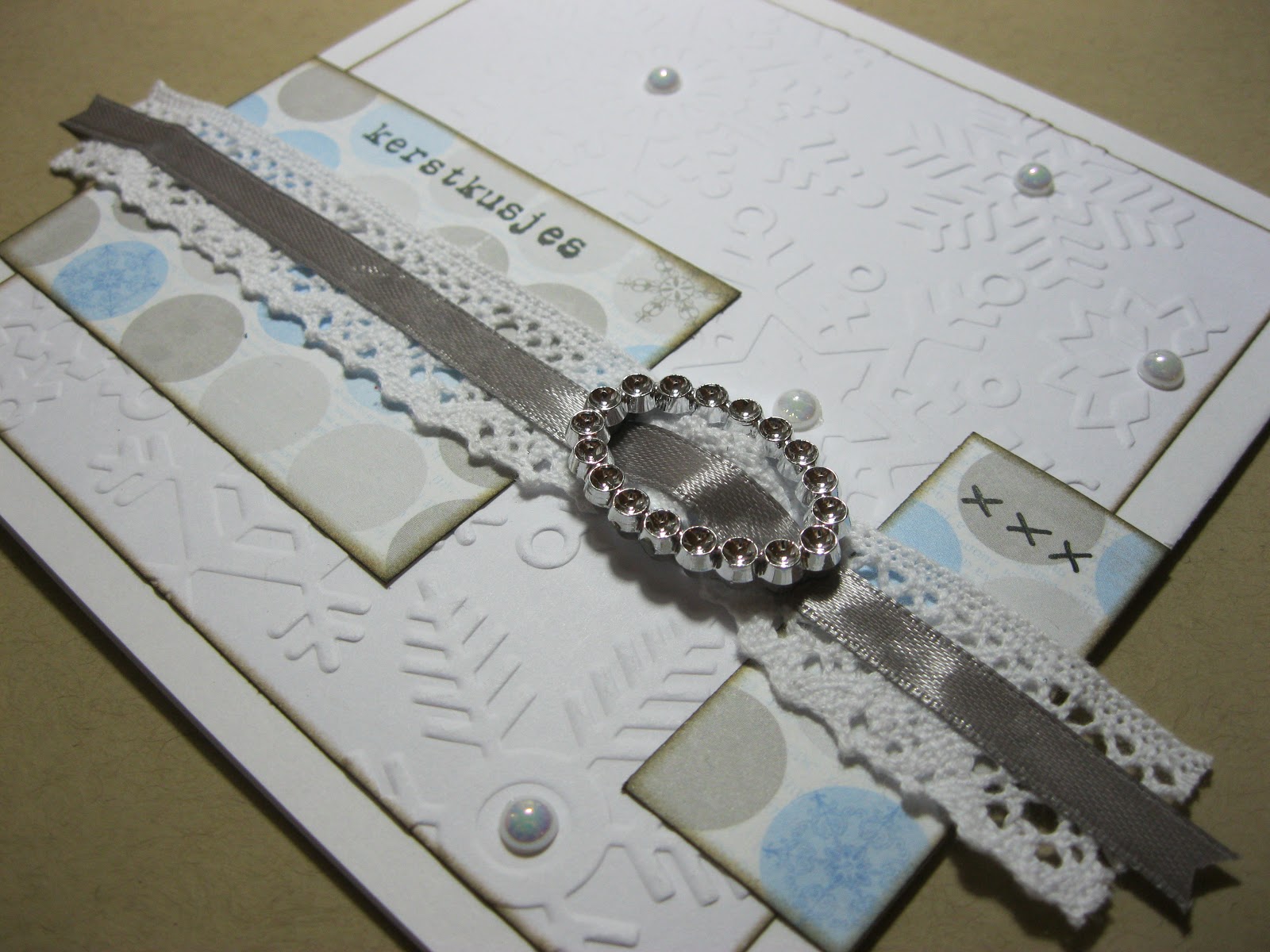 Cuttlebug, AB plakparels, lintje, kant en een gesp.