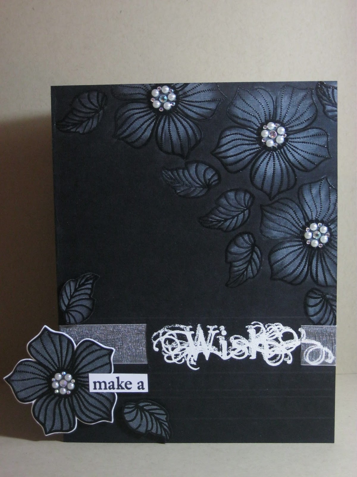 op zwart Bazill papier gestempeld.