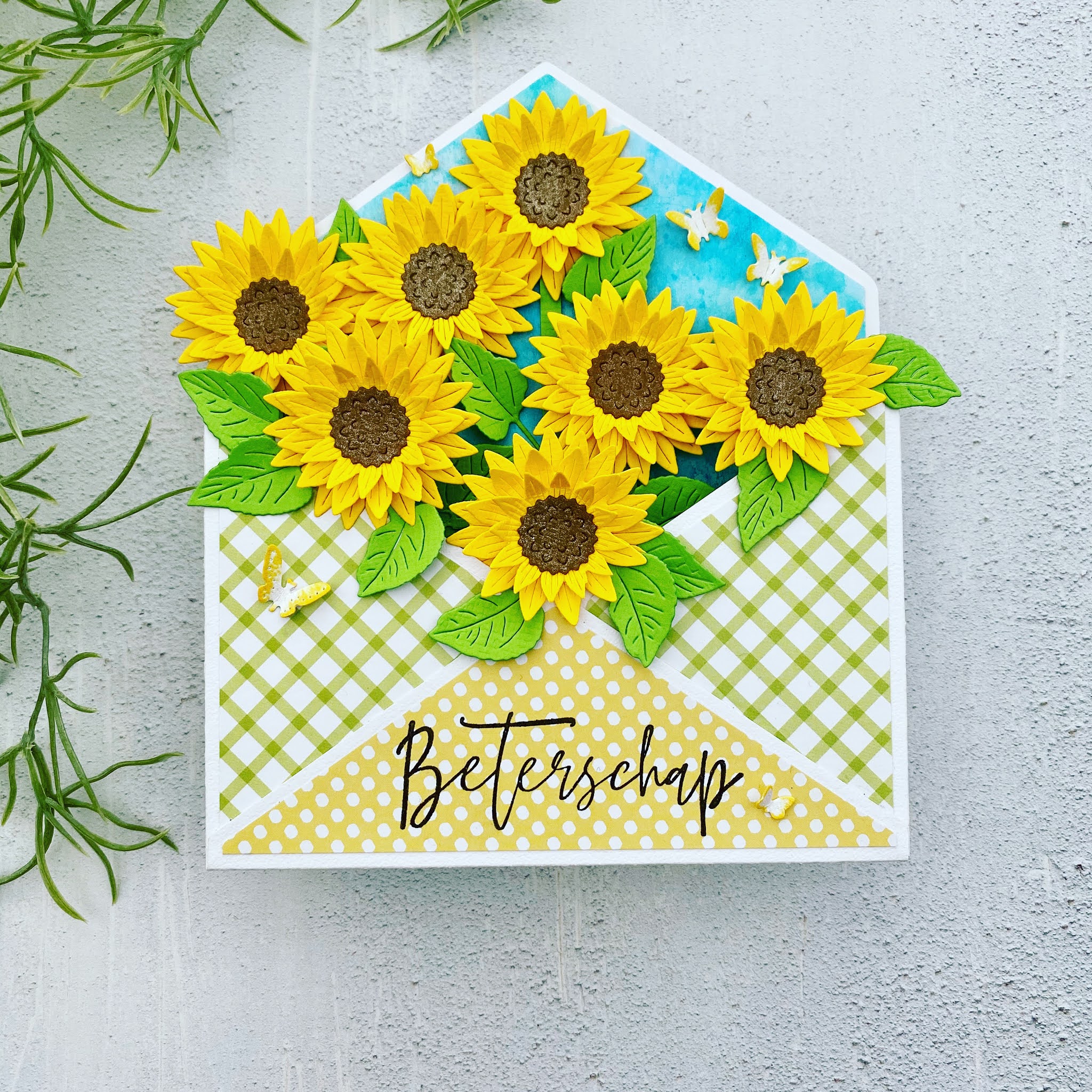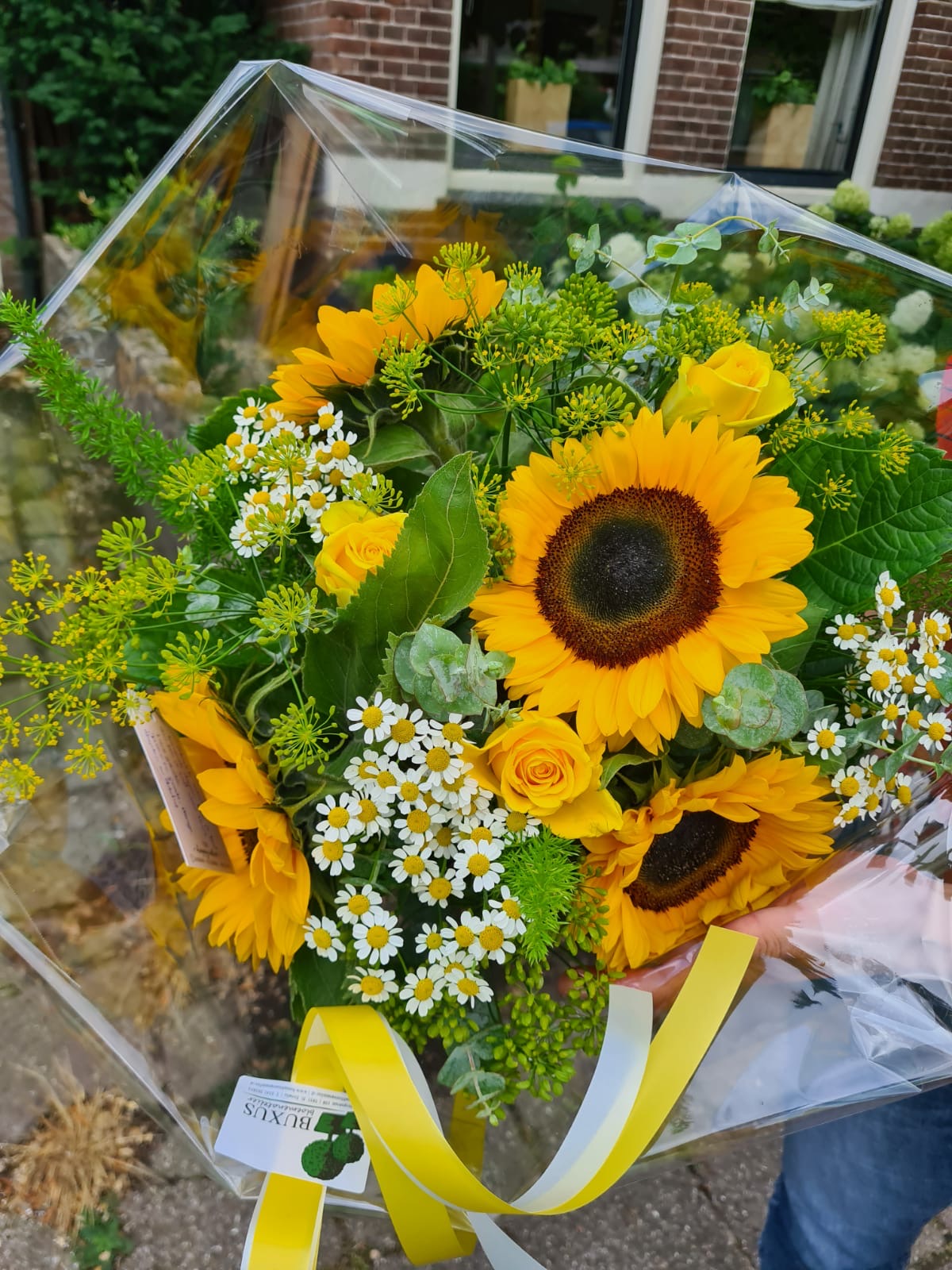 Met zonnebloemen!
